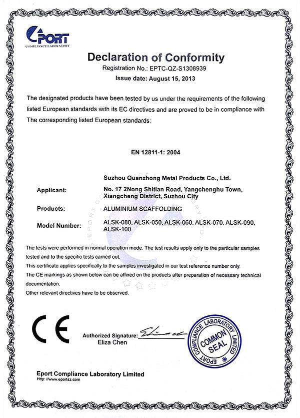 开云官方app下载站-开云(中国) 专注铝合金制品的开发“产品就是人品”的企业理念,不断进行技术创新、设备创新、服务创新、和管理方式创新来继续研发出更多满足未来发展需要的产品, 公司产品通过欧盟认证取得CE认证并取得证书,铝合金脚手架系列产品通过SGS认证,铝合金平台和梯具类产品均严格按照GB12142-2007,GB17888等标准设计生产。