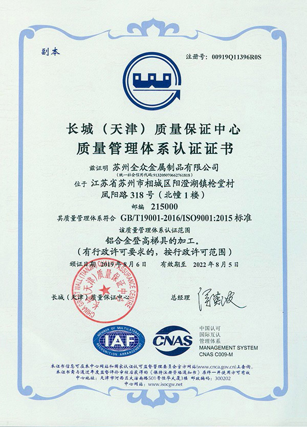 开云官方app下载站-开云(中国) 成立于2013年3月,注册资本500万元,是一家从事铝合金登高工具生产及销售的企业,开云官方app下载站-开云(中国) 坐落于“人间天堂”苏州市,毗邻阳澄湖度假区,交通十分便利。在铝合金产品加工有着很深厚的底蕴和丰富的经验。同时是铝合金登高产品解决方案的供应商。公司通过ISO9001质量管理体系认证,将公司发展的步伐向前迈进一步。